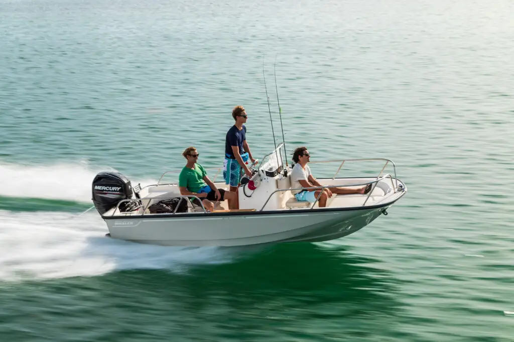 The most compact member of the proven Montauk family is a durable, stylish, and versatile 15-foot center console boat that can easily take you from the canal to the bay to the beach. Traditional lines and Boston Whaler’s legendary unsinkable hull combine for a smooth, soft ride with up to 60 horses moving it briskly through the water. The roomy layout features a fiberglass leaning post, and an optional fishing package makes it a capable inshore angler. The Montauk 150 is truly a small wonder—as easy to operate as it is to own.