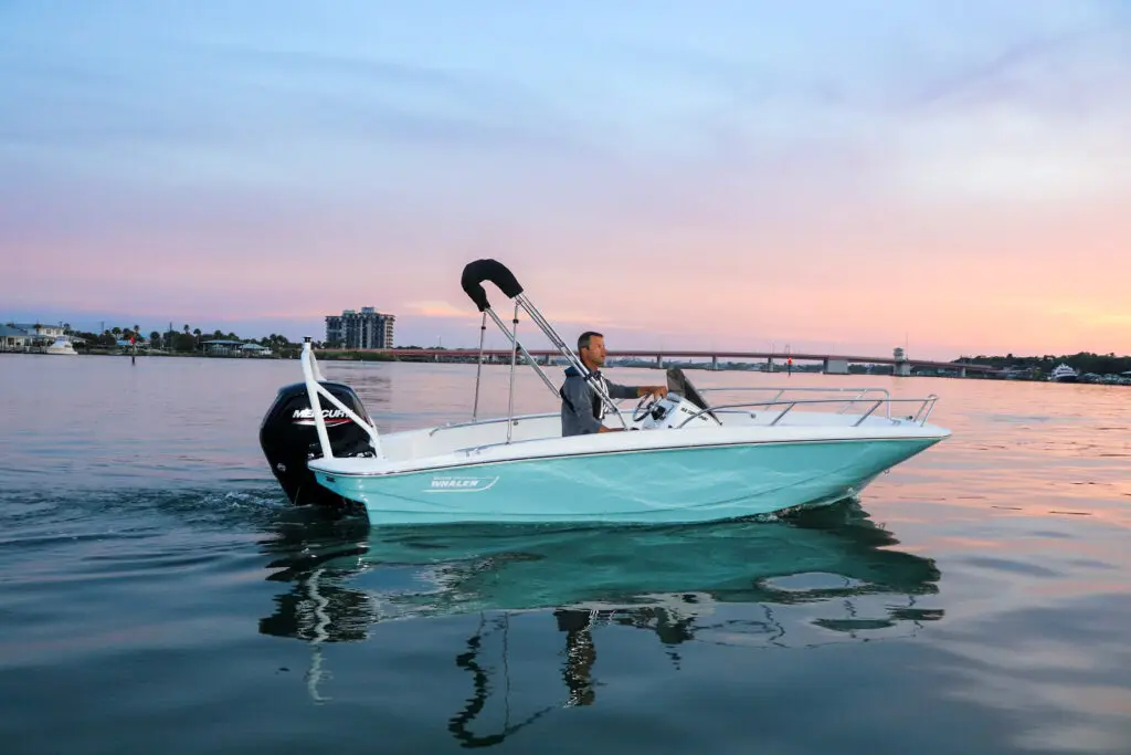 The most compact Whaler is nimble, shallow-drafting, and safe, making it perfect as a canal runner, big boat tender, or inshore fishing boat. This 13-ft. boat is thoughtfully appointed with lockable, water-resistant bow storage, and aft swim platforms. Choose from six seating configurations, add an optional sun top, and enjoy watersports, cruising, fishing, or just relaxing. The low-maintenance, easy-to-own 130 Super Sport boat is reliable, user-friendly and stylish—and above all, lots of fun for everyone.