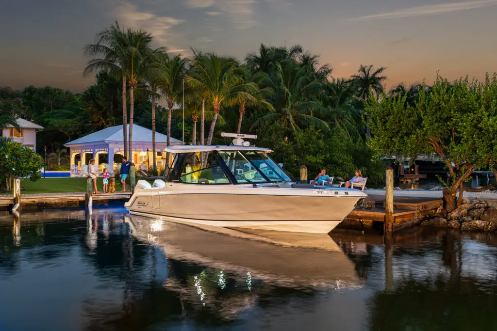 Our largest dual console brings family and friends together on the water like no boat you’ve ever encountered. An expansive deck is surrounded by luxurious seating, including our award-winning convertible port lounge and an inward-facing couch at starboard. The dual console seats two on the port side and gives the captain the visibility and technology to lead any adventure with ease. A sleek and protective hardtop and half or full windshield options shield you from the weather, and a large head means comfort for all. With Whaler’s legendary unsinkable hull and premium, rock-solid performance, the 330 Vantage will transform the way you and your crew experience the water.