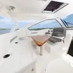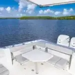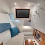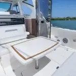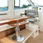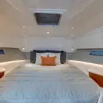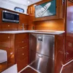 The centerline walkway allows guests to move with ease from zone to zone with minimal conversions and maximum enjoyment. Meals can be prepared in either the cabin or the cockpit entertainment center which features a grill and sink. Dual refrigerators provide cold storage in both areas.