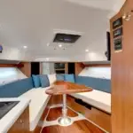 Below deck, you’ll instantly notice the class-leading open cabin space and storage, thanks to the streamlined galley. From the generous berth you can listen to the lapping waves and watch the moonlight stream in through the large hull-side windows. With the Pursuit OS 325, your time spent on the water will never be the same.