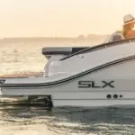 The SLX 350 Outboard incorporates top SLX features and enhancements that set the standard for large dayboats. The SLX 350 Outboard delivers a superior boating experience with twin Mercury® 350 Verado® outboard engines, Mercury’s Joystick Piloting for Outboards, innovations such as quietRIDE™ technology and optional Dynamic Running Surface™. In addition, the SLX 350 Outboard offers a reimagined seating layout with room for 18, anchored by a cockpit social area and “concealable” transom loungers. The intuitive helm comes standard with dual 9-inch Simrad® touchscreen displays, including Mercury VesselView® Link Data. The expanded interior Port Hideaway® provides a larger air-conditioned space.