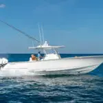 Hitting the sweet spot in the V Series lineup, the V-37 shines as a versatile coastal or offshore fish-raising thoroughbred with the legs to run long distances powered by either twin or triple outboards.