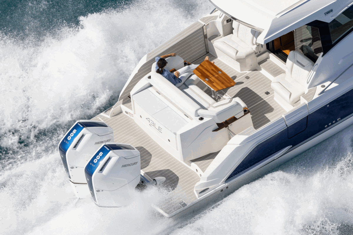 The Tiara Yachts 43 LE and 48 LE are designed to deliver exceptional performance and cutting-edge technology. The 43 LE is powered by twin Mercury® 600hp V12 engines, paired with an integrated electronics package that features Mercury® digital throttle and shift, joystick piloting, and Garmin® Marine Navigation Systems for intuitive control when navigating port to port.